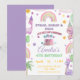 Get ready for some dinosaur fun with this cute pastel girls pink lavender rainbow birthday invitation.