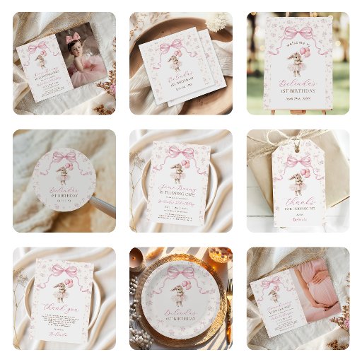 Convites Pink Floral Coquette Bow Bunny 1st Birthday