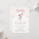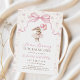 Pink Floral Coquette Bow Bunny 1st Birthday Invitation