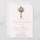 Pink Floral first communion invite in Spanish. Invitación de primera comunión para niña