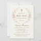 Pink Floral Wreath Cross Girl First Communion Invitation