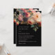 This vintage dark moody wedding invitation features light pink roses on a black background. Your photo in an oval form on the backside.