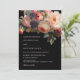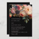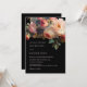 This vintage wedding invitation features dusty pink an purple flowers on a black background.