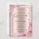 Convites Pink Flowers Rose Gold Glitter Frame Crown
