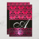 Convites PINK FUCHSIA BLACK MONOGRAM, branco brilhante