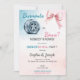 Invitation for a gender reveal party with a tire and pink bow design. Text reads "Burnouts or Bows? Nobody Knows!" Hosted by Sophia and Joseph in Philadelphia.