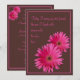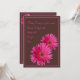 O texto sobre esta margarida rosa de gerbera, o convite para o casamento de fundo castanho é totalmente personalizável. Para alterá-lo, use as opções de personalização. Para alterar a fonte, a cor da fonte ou a cor do plano de fundo, você pode usar a opção personalizar. As cores para este convite são cor-de-rosa e marrom-chocolate. Você pode mudar facilmente a cor de fundo para o que quiser.