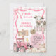Pink Gingham Farm Birthday Invitation, Three I E I O Birthday Invitation, Editable Pink Floral Tractor Farm Animals Kids Birthday