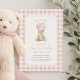 Invite friends and family to celebrate your little one's beary first birthday with this pink gingham teddy bear invitation.