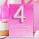 Convites Pink Glitter Balloon 4th Birthday for Girls