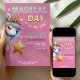 Convites Pink Glitter rainbow unicorn 4th birthday