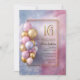 Invite your friends and loved ones to your 16th birthday celebration with this modern invitation that features a stylish gold frame and pink, gold and lavender balloons. The customizable text area in this invitation template allows you to include all the necessary details for your special birthday celebration, including the date, time, venue, and RSVP information. A variety of paper types and corner styles are available for your unique invitations, along with the option to download if you prefer a digital format.
