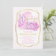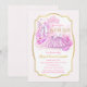 Convites de chá de bebê para meninas com linda coroa de princesa, tutu e sapatos de balé em um fundo elegante rosa e dourado. Você pode personalizar facilmente esses convites cor-de-rosa e dourados para o seu evento, simplesmente adicionando seus detalhes no estilo de letra e formulação de sua escolha. Este é um design impresso sem brilho real, jóias, etc.