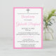 Celebrate your child’s special day with this simple watercolor baptism invitation, featuring a gray cross and pink background for a simple and graceful design with a repeating gray cross pattern on the back.