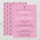 Celebrate your child’s special day with this simple watercolor baptism invitation, featuring a gray cross and pink background for a feminine and graceful design with a repeating gray cross pattern on the back.
