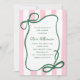 Convites Pink Green Striped Bow Cute Baby Shower Whimsical