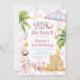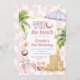 Convite para Aniversários de criança cor-de-rosa, dois Convites de festas segundo aniversário da costa da praia, tema de verão rosa