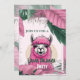 Pink Happy Smiling Lama, este design apresenta um lindo e adorável Lama Feliz Smiling Rosa rodeado por palmeiras verdes e flores tropicais cor-de-rosa.