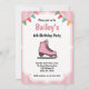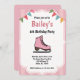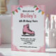 Jogue diversão de aniversário com este adorável convite de festas de patinação de gelo rosa. Apresentando um doce design de patinação e detalhes divertidos, este convite dá o tom para um dia mágico de diversão com gelo. Personalize com o nome do seu filho, a idade, os detalhes da festa e muito mais para criar um convite único que os convidados adorarão. Uma escolha encantadora para aniversários de inverno, festas de gelo, ou qualquer celebração de temas de skate.