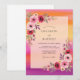 This design features a vibrant gradient of sunset hues ranging from warm orange to deep magenta. Lush watercolor bouquets of blush pink roses and deep crimson ranunculus adorn the edges. Delicate purple leaves and golden foliage add a whimsical and organic feel to the artistic backdrop. Ideal for a summer seasonal event, the palette evokes the warmth of a tropical twilight.