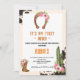 convite de 1º aniversário do jardim de infância para meu primeiro rodeo cowboy Convite de primeiro aniversário temático de cowboy doce que pode ser personalizado para qualquer idade. Este design tem vários itens temáticos de cowboy, cacto e um padrão de couro de vaca ou impressão de vaca no verso.