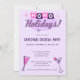 A fun retro design featuring midcentury modern elements with a "Ho Ho Holidays" billboard in various shades of pink and purple, and cocktails on a lavender background. Personalize this Christmas Cocktail Party invitation with your own party details. You can change the color of the background and the cocktails to suit your own style.