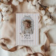 Celebrate your little one's Goose themed first Birthday with this easy to edit template. Featuring a playful wavy bow border with your own custom photo inside. There is a sweet little goose with a pink bow on it in the corner, along with 'One silly goose' typography, along with a pink stripy background.