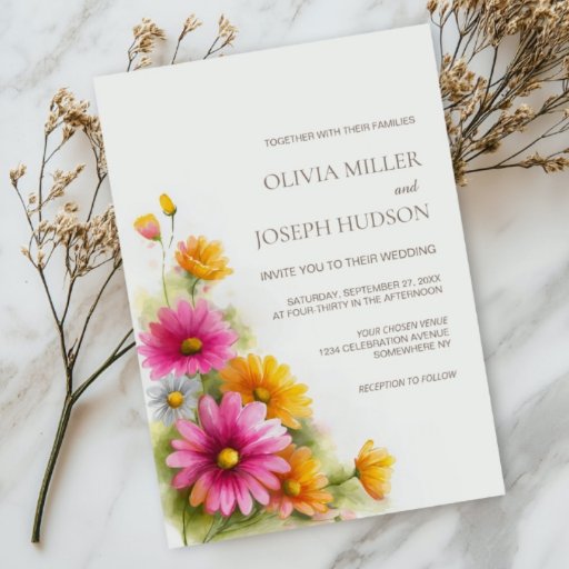 Invite your friends and loved ones to celebrate your union with this vibrant pink and orange floral wedding invitation. The customizable text allows you to effortlessly add the bride and groom’s names, wedding date, and the necessary details of your celebration. A variety of paper types and corner styles are available for your unique invitations, along with the option to download if you prefer a digital format.
