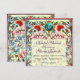 Elegante, design floral clássico com tulipas vermelhas, cravos, teal, flores azuis aqua, flores primavera, espirais, flores elaboradas a partir dos motifs turcos do século XVIII e da brilhante pedra gema do aquamarine 3D de Búlgaro Lumini (c). Fácil de personalizar com suas iniciais e seu próprio texto como um cartão de casamento, guarde a data, cartões de chá de panela, , doces 16 aniversários, festas, chás de noivado de aniversário, ou qualquer evento que você desejar!