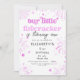 Let your little girl sparkle and shine with this pink “Our Little Firecracker is Turning One” birthday invitation! With soft pastel fireworks, stars, and playful typography, it’s a sweet twist on a patriotic theme—perfect for a July 4th birthday bash. Easily personalise with your party details and celebrate her first milestone in style!