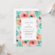 This design showcases a vibrant array of watercolor roses and ranunculus in warm pink and peach tones. Delicate teal and aqua foliage creates a refreshing contrast, providing a bright and airy aesthetic. Perfect for a sunny seasonal ceremony, the artistic botanical elements evoke a romantic and cheerful atmosphere for your special occasion.