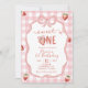 Convites Pink Plaid Strawberry Coquette sweet one birthday