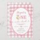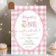 Pink Quirky One Chic Birthday Invitation, Pink Coquette Arco Birthday Invite, Editable Preppy Little Chicken Primeiro Aniversário