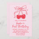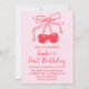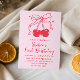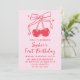 Convites Pink & Red Bow Cherry Fruit 1st Birthday Party