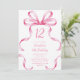 Convites Pink Ribbon Coquette Bow 12th Birthday Invitation