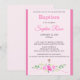 Convites Pink Rose Floral Watercolor Cross Stripe Baptism
