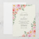 Delicate watercolor blooms in soft pinks and peachy oranges create a romantic, ethereal atmosphere. Lush greenery weaves through the floral clusters, evoking a gentle, artistic feel. This design features a harmonious palette of blush and rose hues.