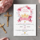 Celebrate a beautiful First Communion with this elegant First Holy Comunion invitation featuring a chalice and a Wreath of pink roses. Perfect for a Catholic celebration, this design is decorated with soft pink flowers for a timeless look.
