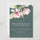 Um belo convite para o almoço das damas de honra modernas, com um galho em cascata de cor d'água de flores magnólias cor-de-rosa e folhas verdes, sobre um fundo verde de sábio escuro, coberto por uma fonte branca moderna. O reverso da placa está em rosa sólido.