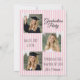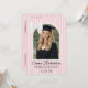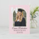 Pink stripe bow graduation invitation featuring a soft coquette aesthetic and elegant photo layout. Designed with vertical blush stripes, a delicate ribbon bow, and a modern structured back layout,