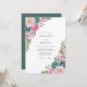 A vibrant palette of blush pink and deep teal roses creates a lush floral arrangement across a clean white backdrop. Detailed petals of ranunculus and blooming roses are paired with delicate green foliage and eucalyptus leaves for a fresh, organic feel. This romantic botanical design evokes a sense of springtime elegance and whimsical charm.