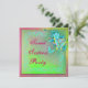 Convite de aniversário de dezesseis anos com borboleta grunge neon rosa brilhante, verde lima, roxo e azul-teal e flores.