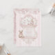 Beautiful pink watercolor whimsical shelf with vintage toys creating a fancy frame surrounding lovely fonts and scripts done in coordinating colors baby shower invite. A pink and white sweet coordinated stripe background with a feminine and elegant look. A perfect baby shower invitation for any season.
