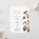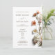 This contemporary modern floral wedding invitation features apricot pink white 3 dimensional wildflowers on a white gray background.