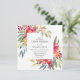 O elegante e rústico design apresenta uma coroa de lindas flores acrílicas pintadas em cor-de-rosa-pincel e amarelo, com pop de folhas e folhagem roxas e verdes coloridas. Cartão invertido numa cor laranja totalmente personalizável Este convite é perfeito para um casamento elegante rústico, ou celebração de verão ou primavera