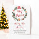 Prepare-se para celebrar os feriados em estilo com este charmoso convite de festas de Natal com uma coroa de aquarelas pintada à mão enfeitada com flores festivas e verde. A mensagem "Feliz Natal" se destaca em uma bela tipografia, e os detalhes da festa são personalizáveis para ajustado de seu evento especial. Com um clássico fundo vermelho e neve no verso, este convite adiciona calor e alegria ao seu encontro de férias. Perfeito para comemorações familiares ou encontros festivos!