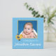 Personalize adicionando foto de bebê, nome e informações a este convite de chá de fraldas bonito e alegre com uma imagem de um pintinho amarelo doce, colcha, com asas florais azuis num fundo azul de bebê. Se o chá de fraldas é anterior ao nascer do bebê, por que não usar uma fotografia de ultrassom do bebê? Um presente de festas de bebês de tema coincidente disponível na loja de presentes de Designs de fotografia TK.
