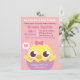 Pequeno está a ponto de chocar! Comemore com mamães para realizar-se antes do dia grande do portal! Este convite do chá de fraldas tem um pintinho amarelo pequeno bonito com fita cor-de-rosa que choca de um ovo roxo. No reverso é um teste padrão de bolinhas simples. Paleta de cores de cor-de-rosa, do roxo e do amarelo. O excelente para chás de fraldas guardarou na primavera o período de abril! Personalize com seus detalhes do chá de fraldas.