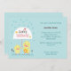 Convite unisex do chá de fraldas. Bonito e divertimento. Características mamã e pintinho do bebê que guardara um guarda-chuva sob uma chuva ligeira. Cores pastel macias apropriadas para algum género. Moder e doce.