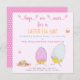NewParkLane - Convite Personalizado para Caça ao Ovo de Páscoa, com 'Salto sobre' em uma tipografia bonita com borboletas, duas pintinhos bonitinhas de Páscoa eclodiram das suas cascas de ovos em rosa pastel e roxo e uma em azul macio. Com uma pequena laranja e uma borboleta cor-de-rosa, e flores bonitinhas de cor pastel. O dorso tem um padrão polkadot rosa e branco quente. Fácil de personalizar no Zazzle com seu próprio texto para um design personalizado. Todos os estilos, cores e tamanhos de texto podem ser modificados para ajustado das suas necessidades. Verifique se há itens correspondentes nesta coleção. Você tem desejos pessoais específicos de design? Sinta-se livre para me contactar!